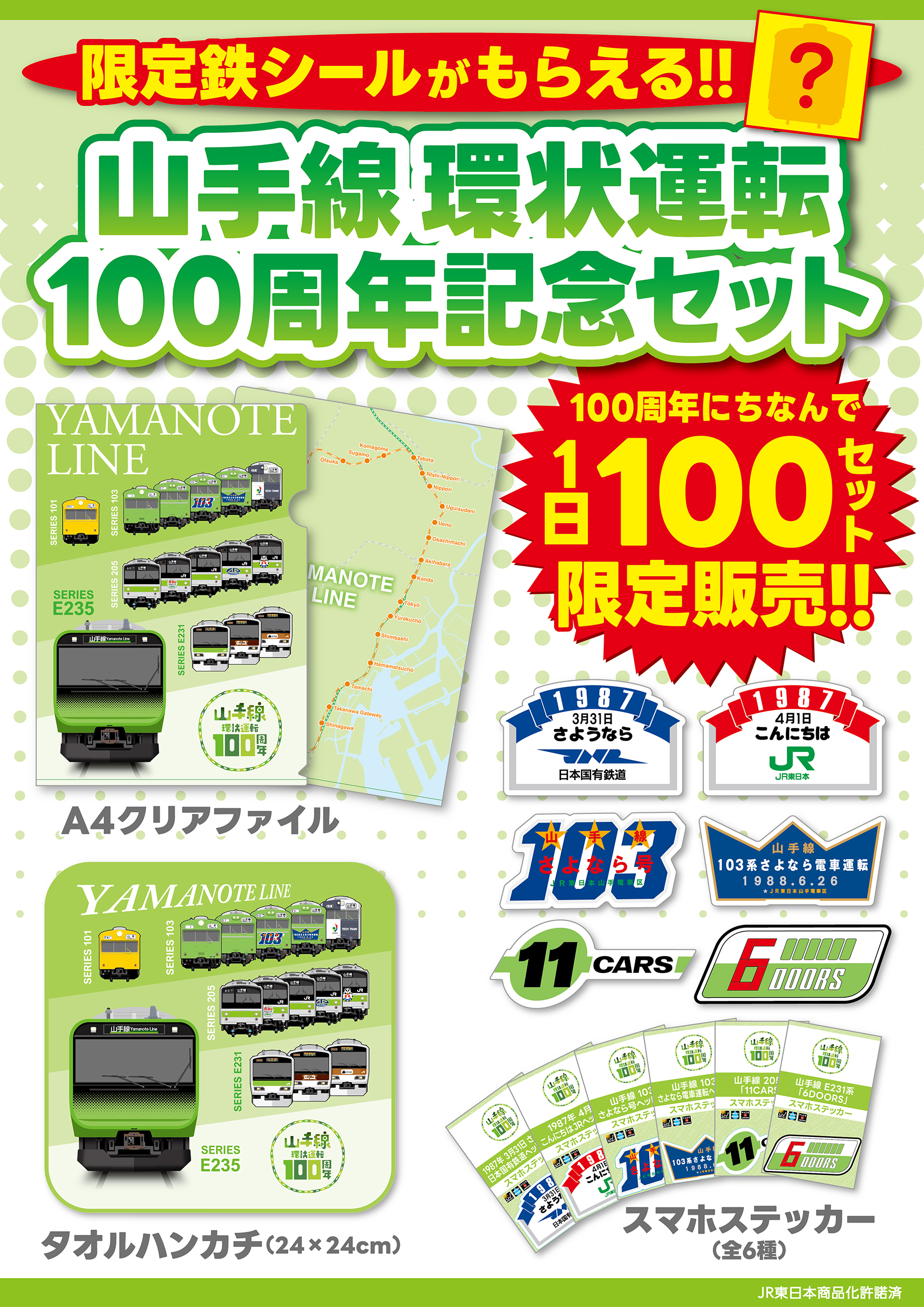 「山手線環状運転100周年」を記念したグッズを先行販売いたします。両日限定各100セット!!